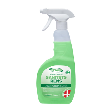 Sanitetsrens fra SVUPP er din go-to løsning til daglig rengøring af sanitære områder.